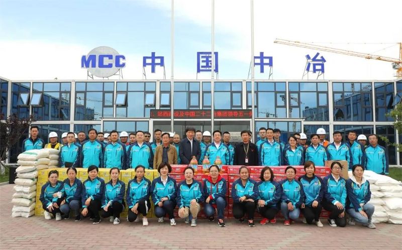 4月29日,中国二十二冶集团党委副书记、纪委书记张育鹏,代理工会主席、党群工作部部长刘维栋,唐山市总工会外私企工会主席曾庆有,唐山市路北区站西美地房地产开发有限公司总经理张宝旺,唐山站西建设发展有限公司副总经理齐连收到唐山站西片区项目慰问一线员工。