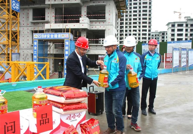 5月2日,中国二十二冶集团副总工程师王智勇到唐山瑞丰新北区项目调研指导工作,并为一线员工送去慰问品。