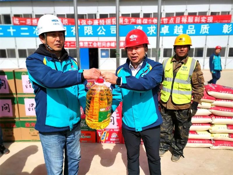 张育鹏为项目人员送去米、面、油、肉类、水果等慰问品,对一线员工的节日坚守和业主的大力支持表示感谢,对项目人员舍小家顾大家、为企业真诚奉献的精神给予充分肯定。张育鹏谈到,唐山站西片区项目是唐山市“一港双城”战略决策部署的重要组成部分,全体参建员工要继续发扬“一天也不耽误,一天也不懈怠”朴实厚重的中冶精神,高标准推进、高质量实施建设,倾力为唐山人民建设放心房、舒心房、精品房,打造唐山“城市门户”新形象,充分展示中国二十二冶集团的综合实力和形象风采,以优异成绩迎接建党100周年。