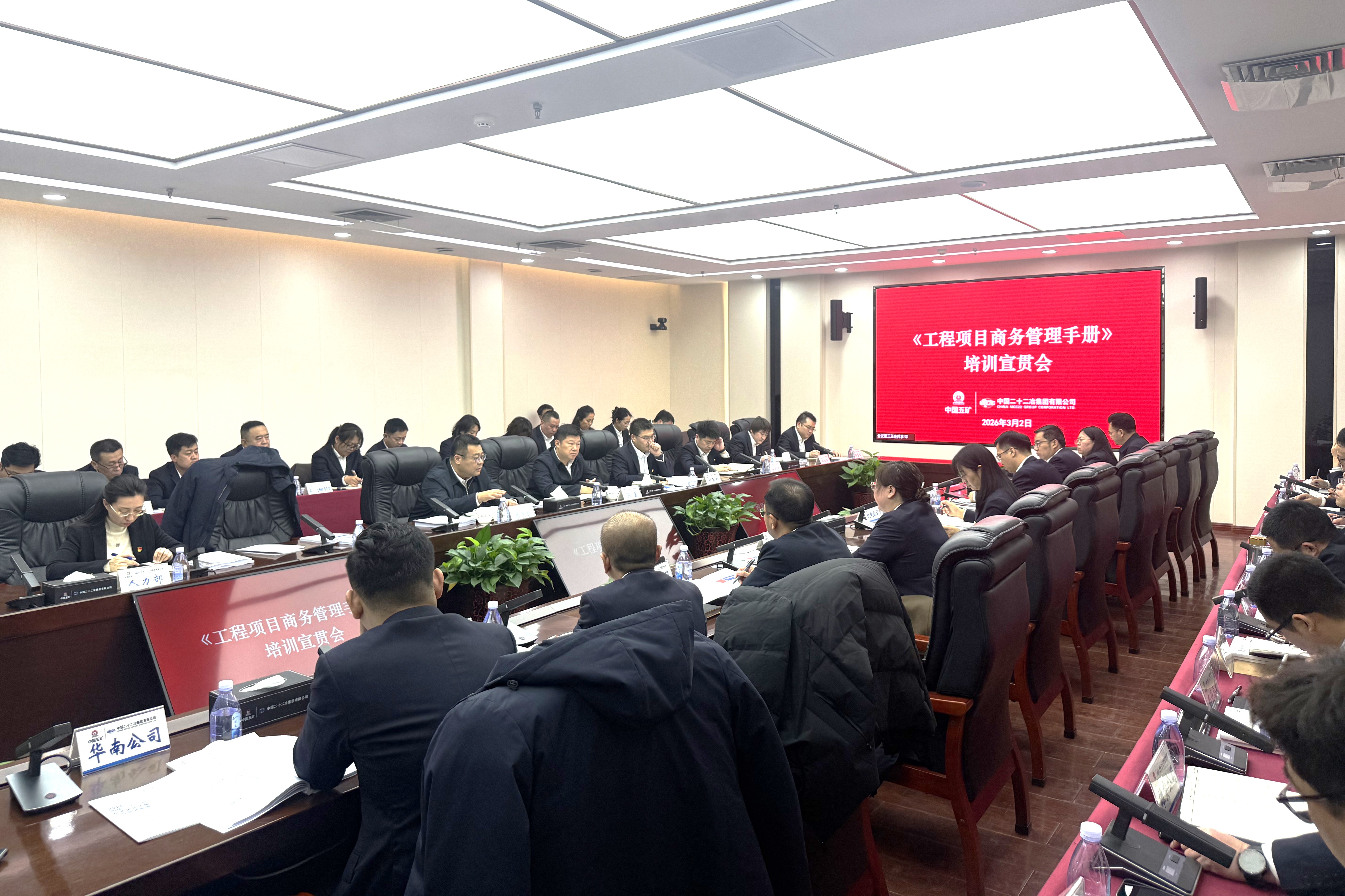 3月2日,中国二十二冶召开《工程项目商务管理手册》培训宣贯会。会议深入贯彻中国中冶大商务管理战略部署,对中国中冶《工程项目商务管理手册》进行了全面宣贯,全面推动《商务手册》落地执行,动员全员树牢“全员、全过程、全要素”大商务理念,以更高标准、更实举措提升项目商务管理核心能力,为公司“十五五”高质量发展筑牢商务管理根基。中国二十二冶党委副书记、总经理慈国强出席会议并就全面推广应用作出安排部署,经营预算部对手册内容进行宣贯。