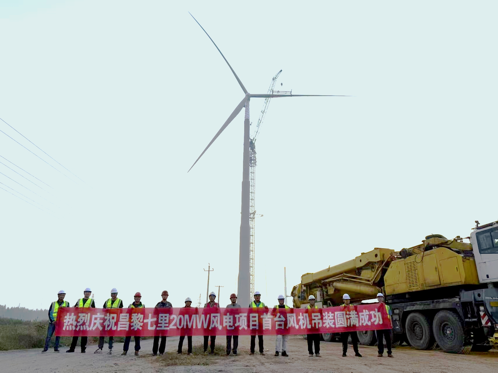 机电公司昌黎七里20兆瓦风电项目首台风机吊装完成
