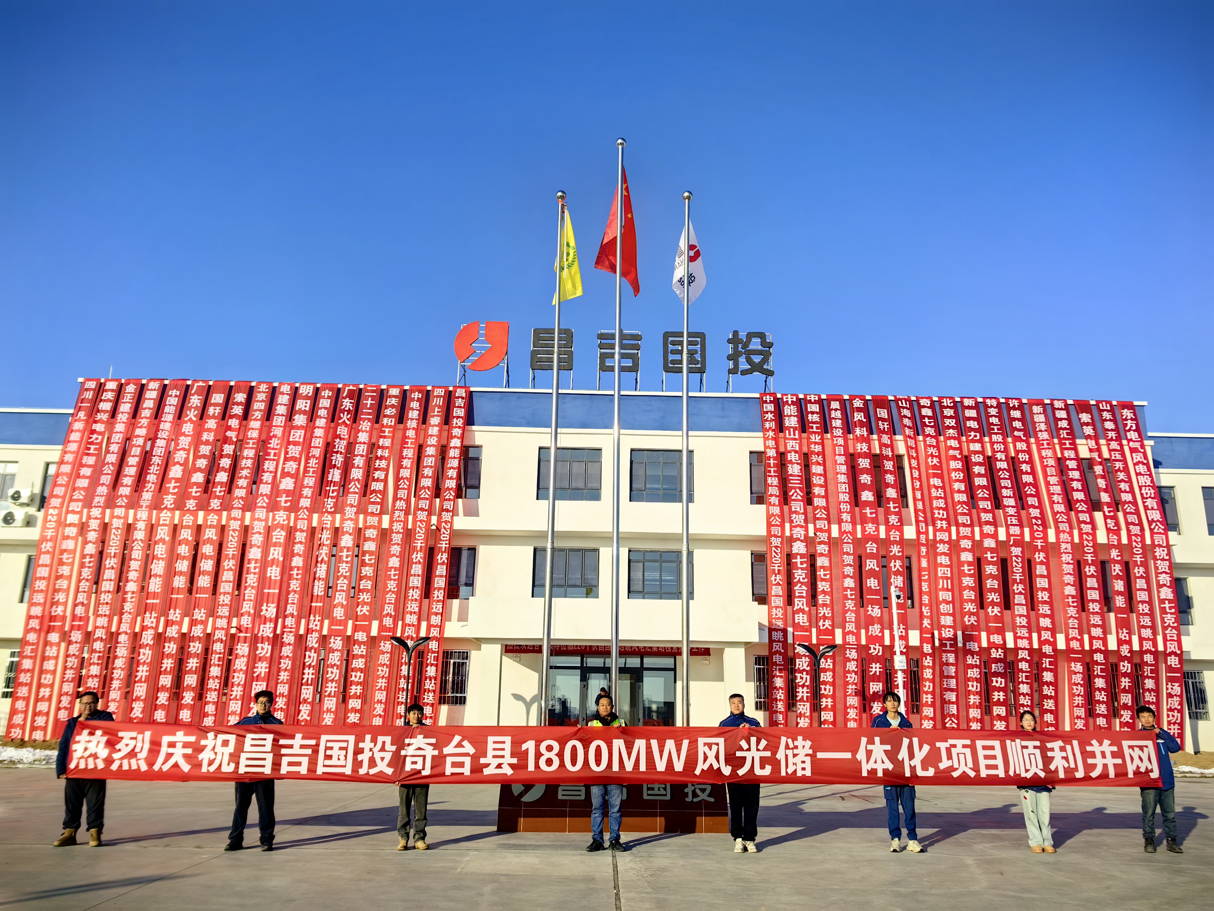 12月26日,由新疆公司承建的国投奇台县180万千瓦风光氢储一体化项目六标段20万千瓦风电场基础及安装工程,首条线路顺利并网。