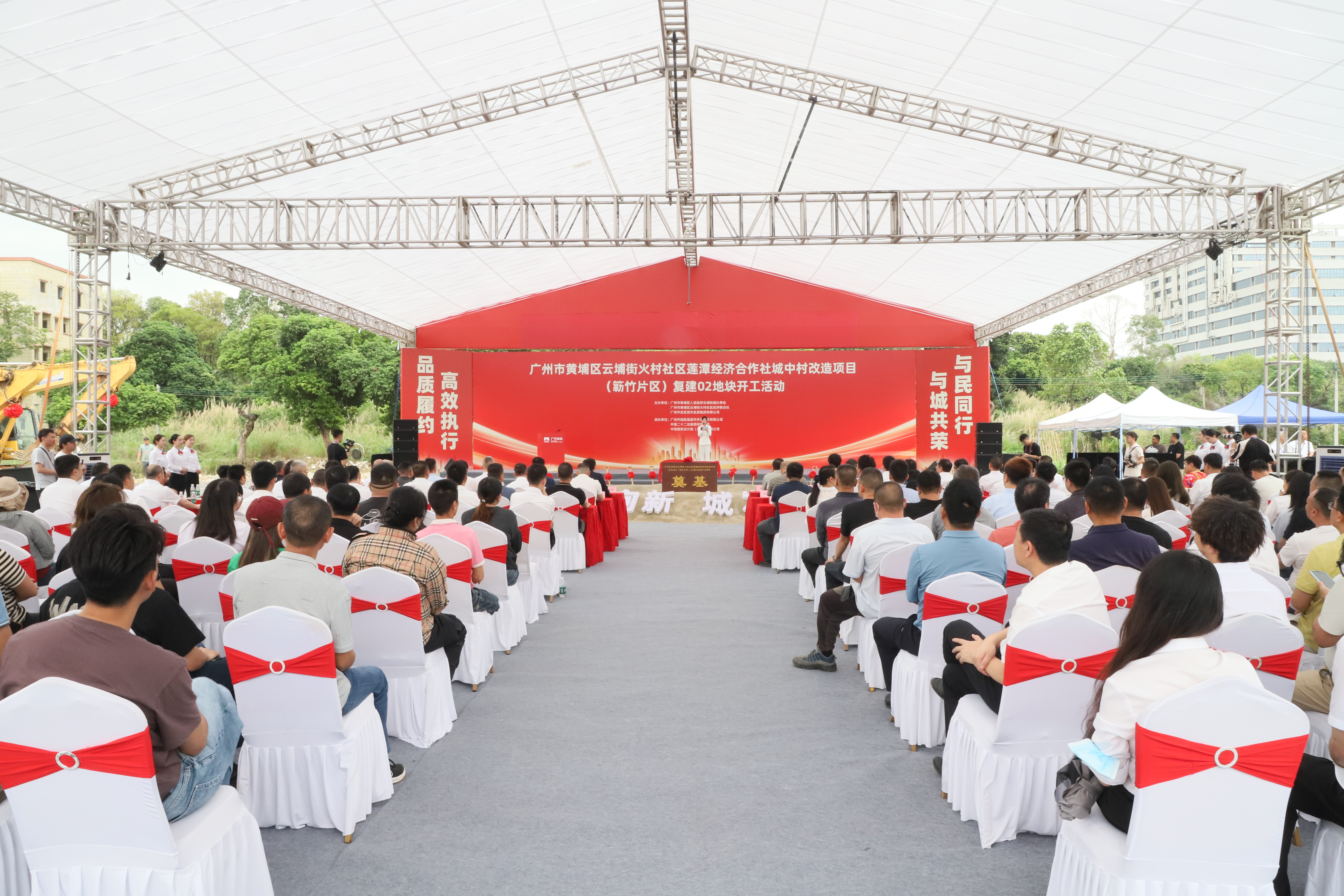 4月8日,华南公司广州市黄埔区云埔街火村社区莲潭经济合作社城中村改造项目(簕竹片区)复建02地块举行开工仪式。