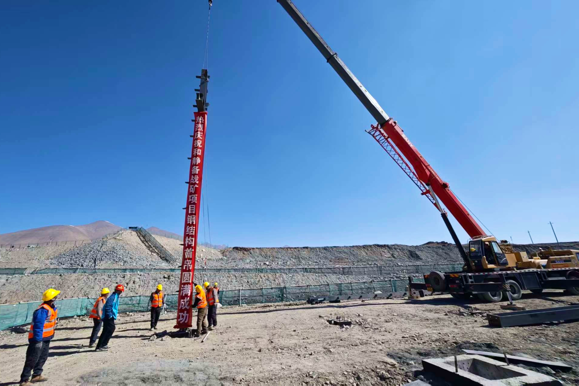 4月10日,金结公司参建的和静备战铁矿选厂改扩建项目浮选脱水车间、精矿输送泵房首根钢柱顺利吊装。
