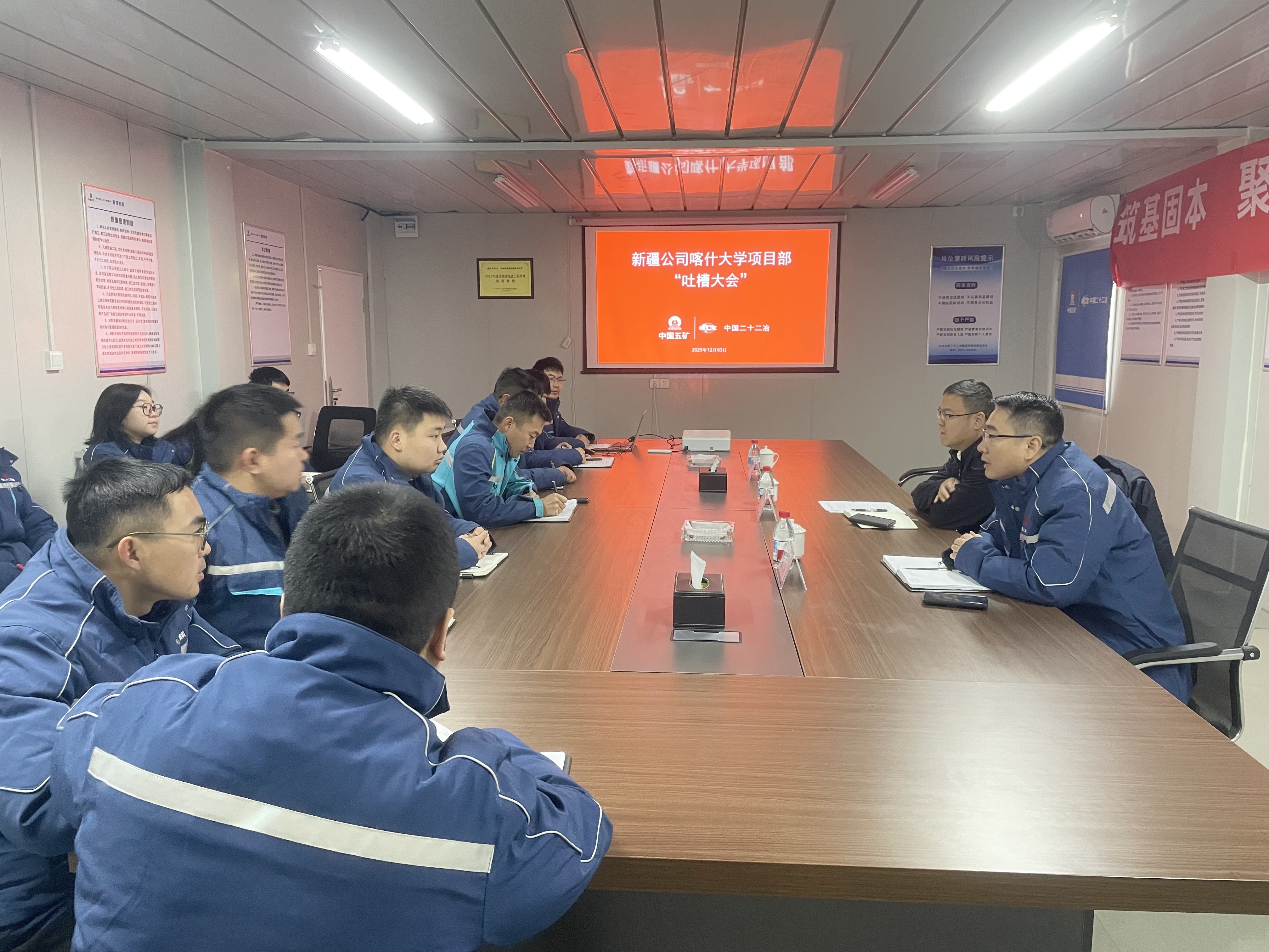 为贯彻落实“民主管理、厂务公开”要求,践行“为民办实事、为企解难题”理念,进一步畅通职工诉求渠道、精准了解基层实情,切实帮助职工解决实际困难,凝聚企业发展合力,12月3日,新疆公司喀什大学项目组织召开基层职工“吐槽大会”。