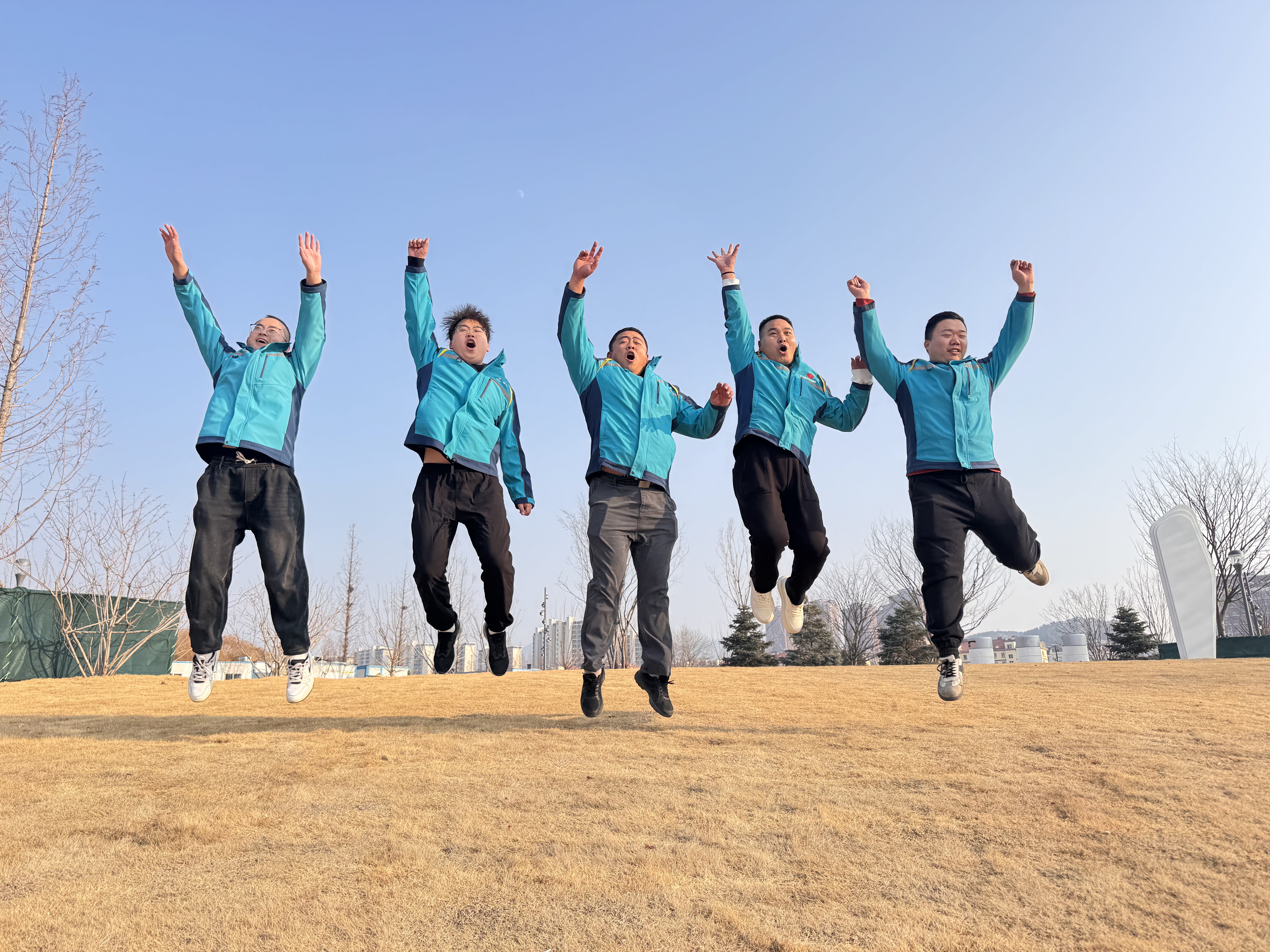 项目团队全员集结,活力拉满,仿佛冬日里的一把火点燃了整个园区。阳光穿过厚实的云层,洒在红色跑道上,像给每个人镀上一层金辉。有人高举队旗,有人并肩冲刺,脚步声与欢笑声交织成最动听的节拍。汗水顺着额头滑落,却掩不住眼角的笑意;寒气扑面,却被彼此的加油声瞬间融化。跑完最后一圈,大家围成圆环,双手叠在一起,喊出“一起向未来”——那一刻,团队的温度超越了冬天,也把最炽热的能量注入接下来的每一项工作。