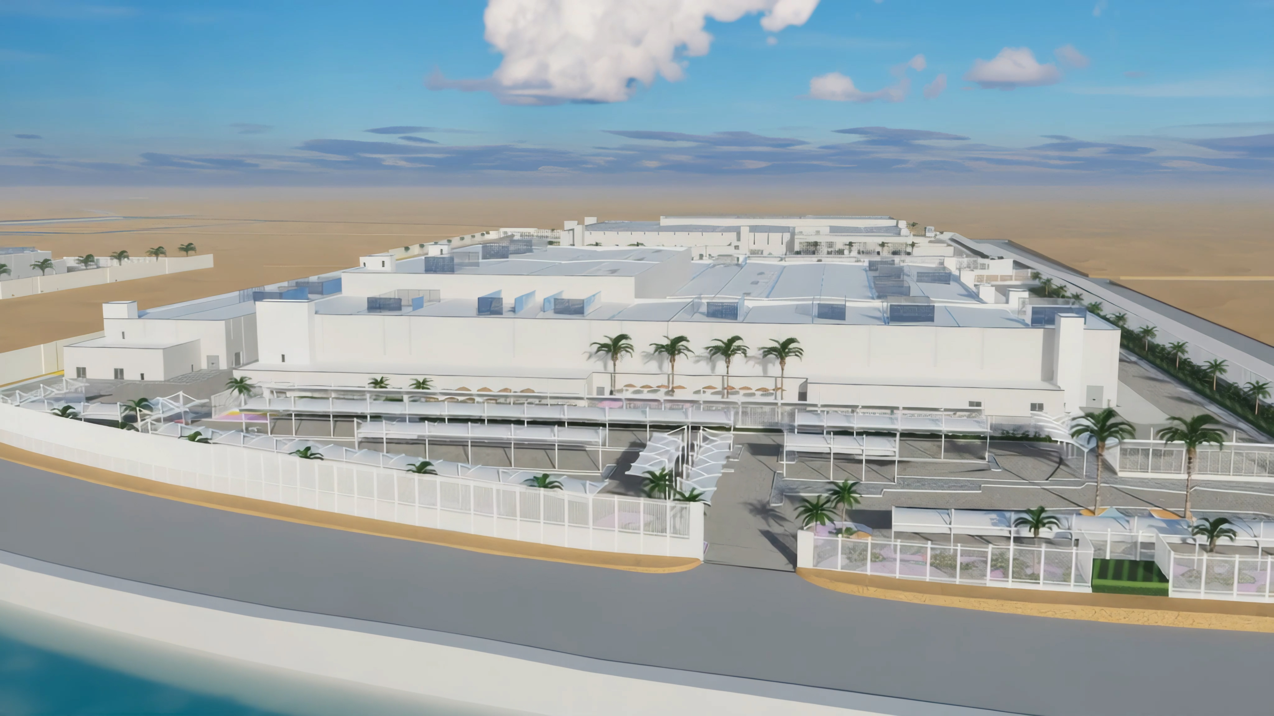 项目毗邻沙特首个新能源电动车品牌CEER制造基地,占地面积71.4万平方米,由沙特主权基金旗下ASDIC公司投资、MSB集团控股MBL公司总承包。该项目包括供应商生产所需的基础设施,实现为CEER电动汽车生产厂提供材料供应,这些设施包括:冷冲压即白车身组装和冲压设施-Shin Young;热冲压即副车架和轴接头供应设施-Benteler;面板和外饰件供应设施- JVIS;仪表板、饰件和控制台供应设施-Fangxin;座椅供应设施-Lear。本项目工作范围为上述的五个供应商厂车间的钢结构供货和安装工程。