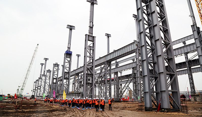 与会人员观摩河钢乐亭钢铁长材项目炼钢连铸工程