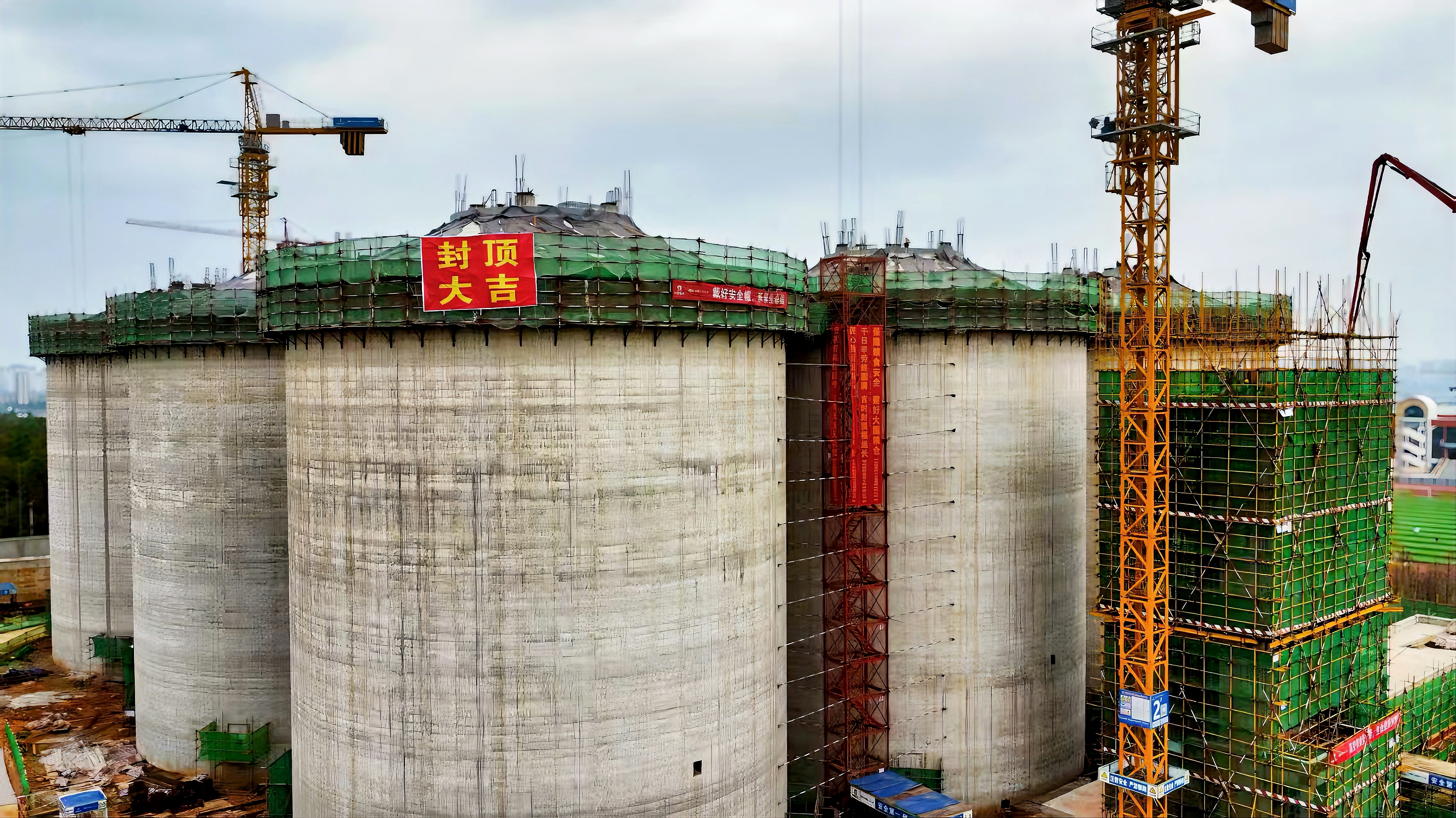 浙江公司中央储备粮宁乡直属库粮食仓储物流项目筒仓仓顶顺利封顶