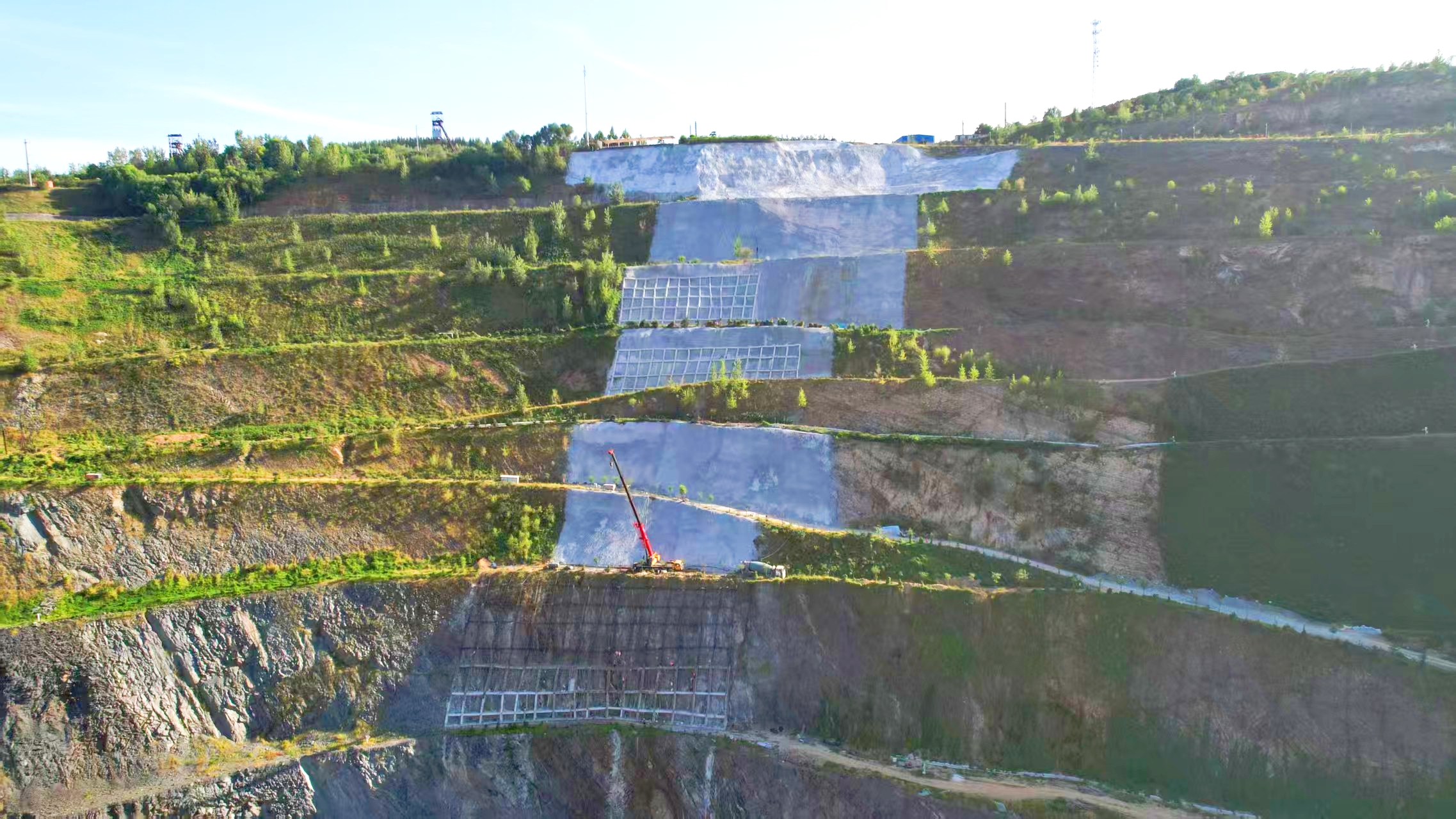 Ⅱ区混凝土喷坡是实现边坡生态修复与防护的关键工序。施工过程中,团队采用专业液压喷坡设备,分层次均匀喷射混凝土,喷射厚度严格控制在设计标准范围内,确保混凝土与边坡岩体紧密结合。Ⅳ区格构梁作为边坡结构加固的重要组成部分,其施工质量直接关系到整个边坡的稳定性。在Ⅳ区格构梁节点施工过程中,原材料方面,对进场的钢筋、混凝土等材料进行严格抽检,确保所有材料符合国家规范及项目设计标准,坚决杜绝不合格材料入场。钢筋加工环节,项目管理人员根据节点设计图纸精准下料,连接强度等指标均经过现场检测,确保满足结构受力要求。