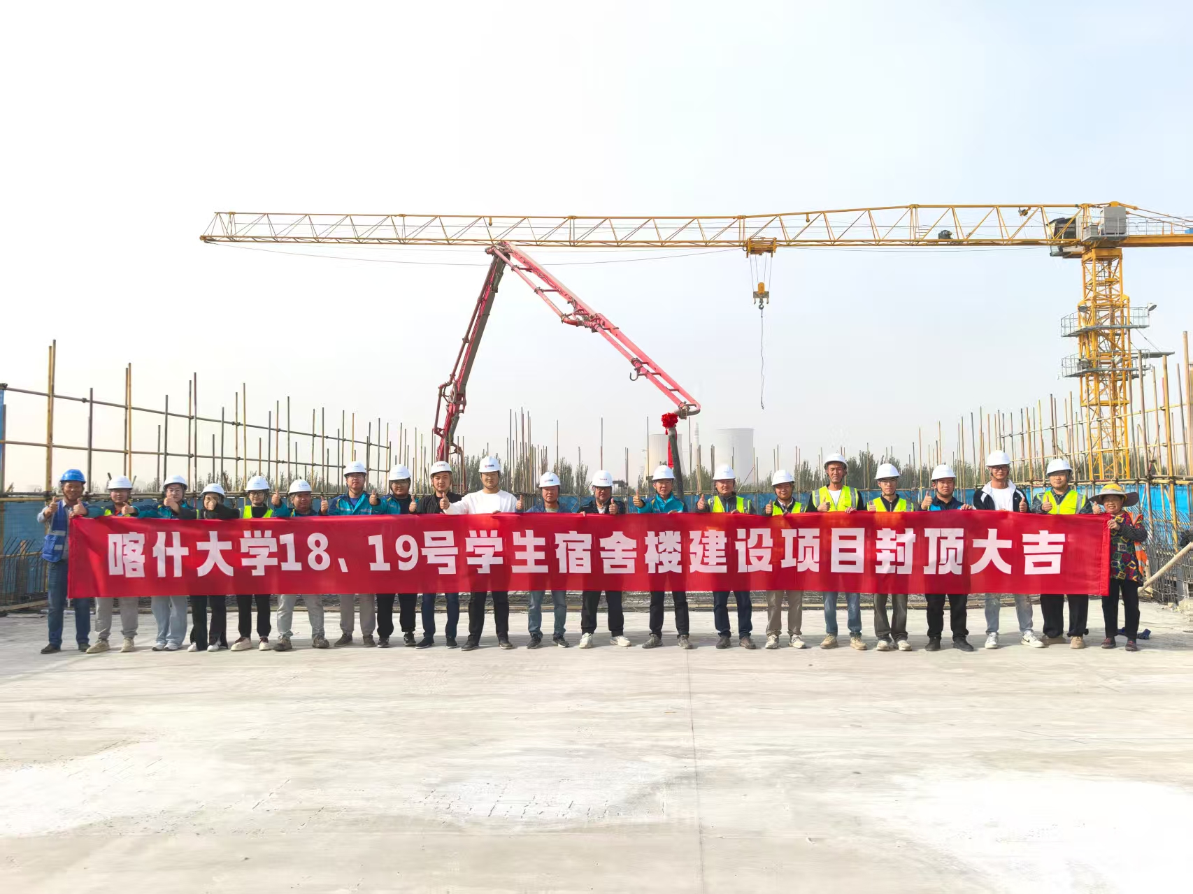 10月8日,新疆公司喀什大学18、19号学生宿舍楼项目主体结构顺利封顶。