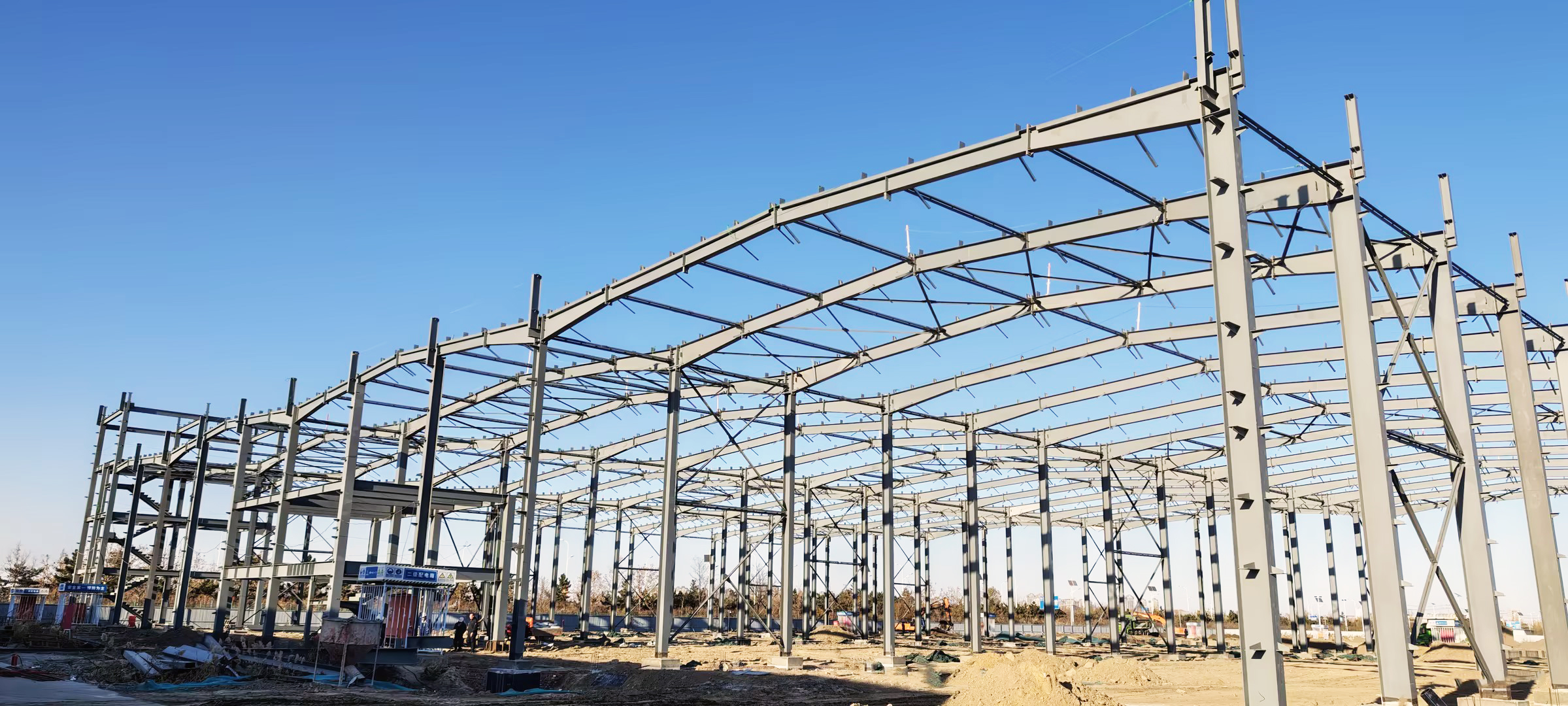 11月26日,华北公司壹济禾仓储物流项目主厂房钢结构施工完成。