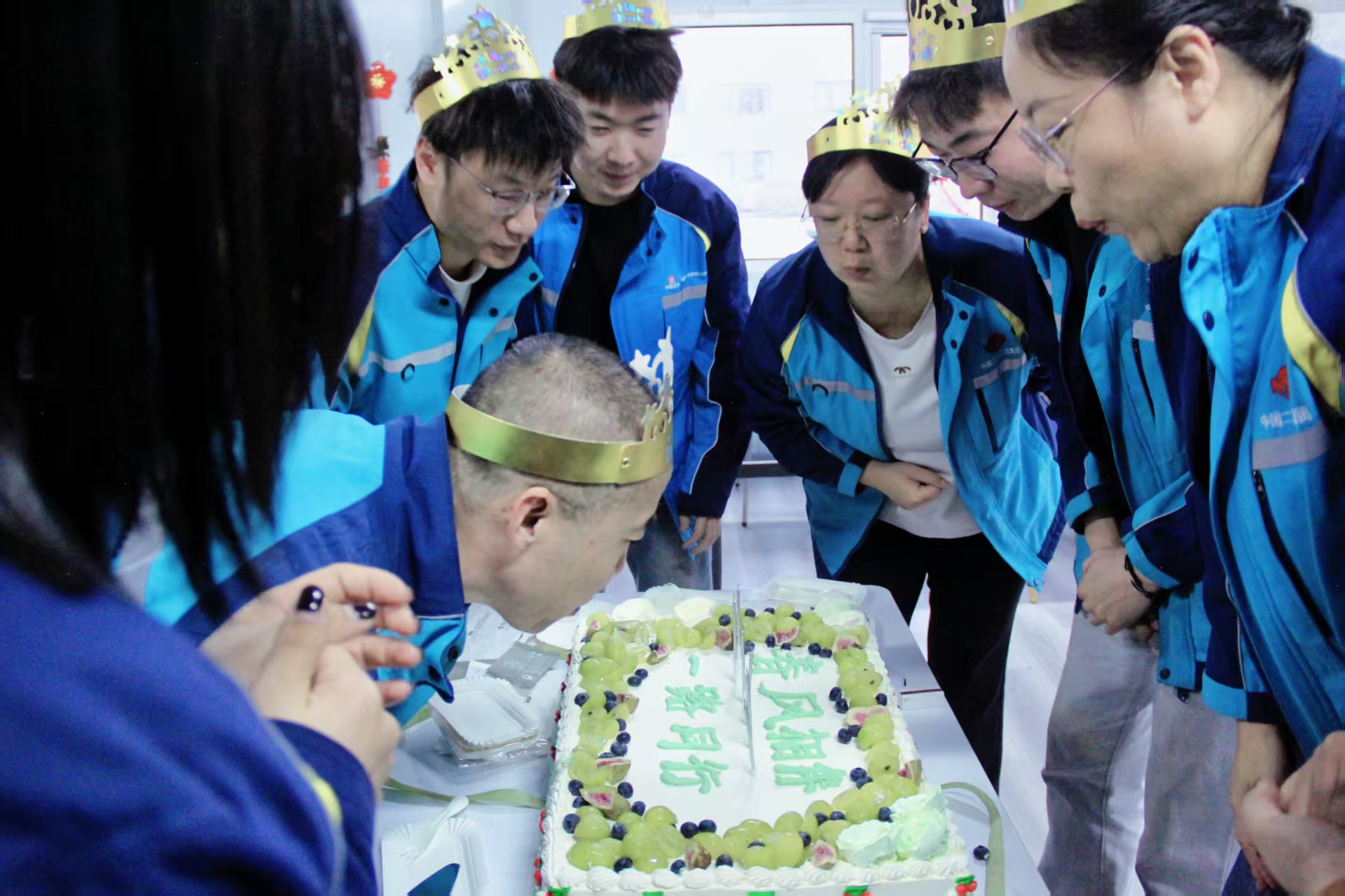 活动首先通过一段精心制作的生日贺卡短视频,带领大家走近20位“寿星”的工作与生活瞬间。镜头里,有专注的神情,有会心的微笑,有并肩作战的身影,也有默默坚守的日常。短短几分钟的光影流转,凝聚的是公司对每一位职工的用心与敬意。随后,公司党总支书记为到场的寿星们逐一送上生日贺卡、戴上生日帽,并与大家合影留念,定格下这一帧帧温暖的画面。