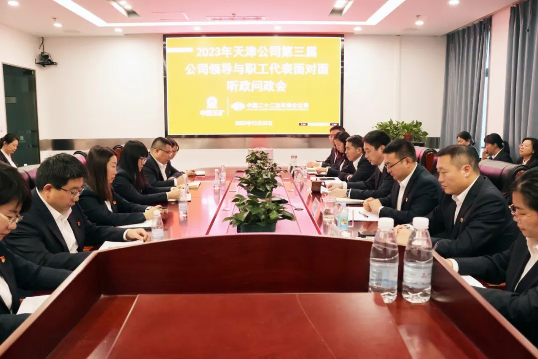 12月22日,中国二十二冶集团天津公司召开第三届领导班子与职工代表面对面听政问政会。天津公司总经理、党总支副书记李艳来代表领导班子通报工作目标任务完成情况及取得的成效。天津公司党群部长解赛楠主持会议。