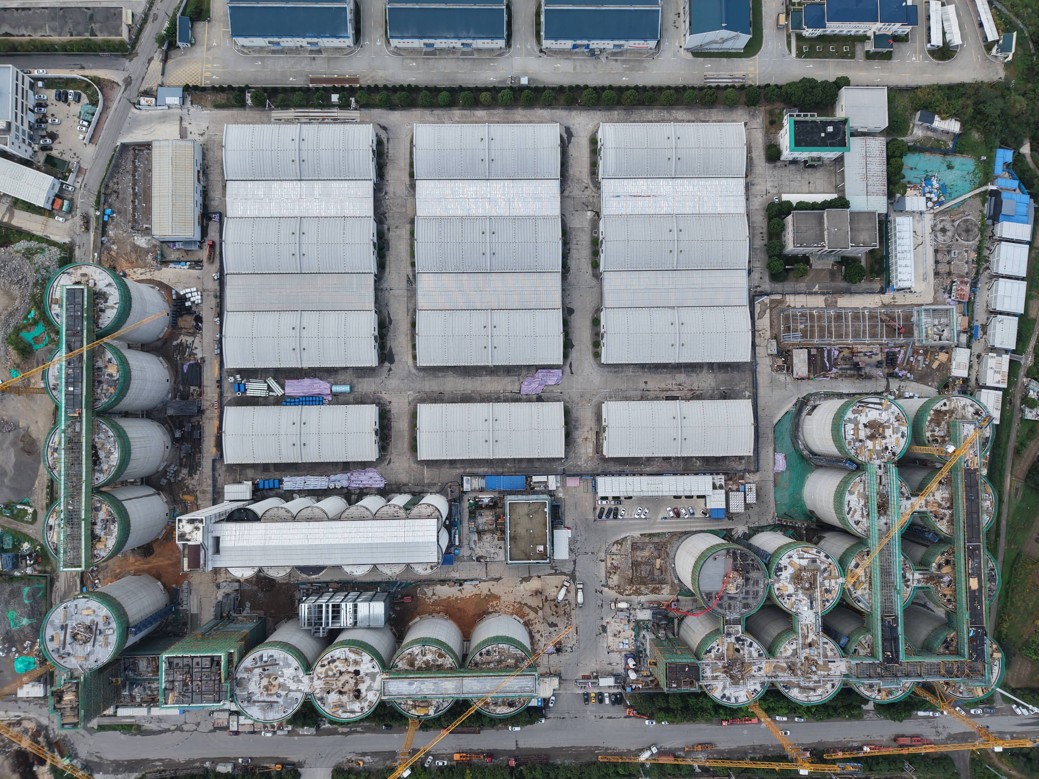 面对沿海地区台风频袭、持续高温的恶劣条件,玉环项目现场数十个仓体同步推进,数百名建设者与数千吨物料密集交叉作业,项目团队以科学管理与技术创新精准破题,通过精细化施工组织、基于实时数据的动态调度以及网格化安全责任体系,成功破解了多作业面、多工种协同的管控难题,在确保绝对安全与品质稳定的前提下,实现了平顶浇筑高强度流水作业的完美统筹。