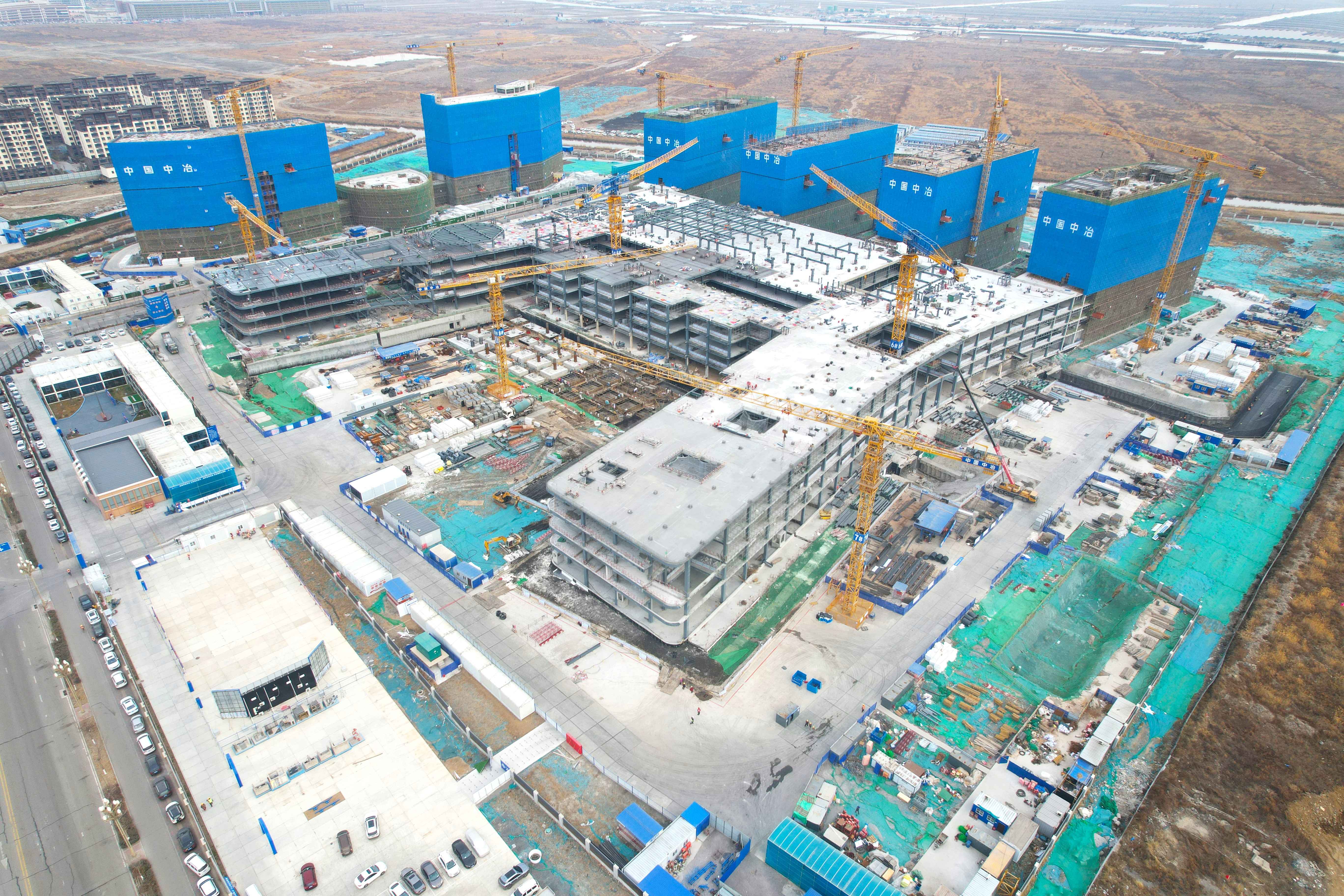 12月21日,中国二十二冶承建的曹妃甸中心医院项目北区主体结构全部封顶。